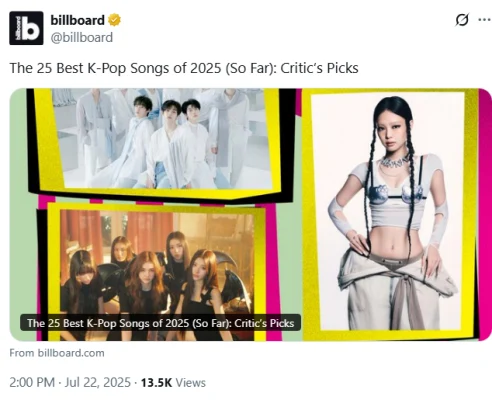 ニュース 米ビルボード選定「2025年ベスト曲」:BlackPink, NMIXX, KATSEYEランクイン!1位KPOPデモハンGolden 時 2025/12/12 19:08 (2日前) コメント 44 コメント