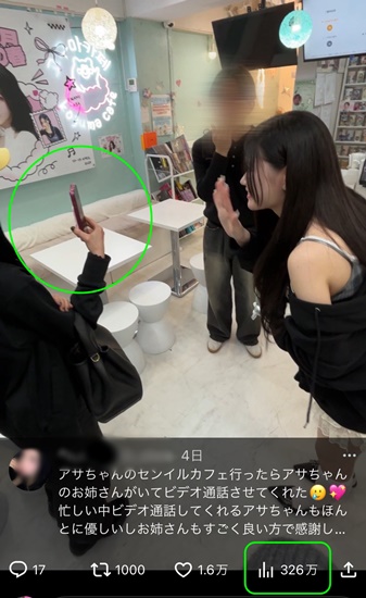 これに遭遇した日本のファンは、写真をあげて「センイルカフェに行ったら、お姉さんが(アサ本人と)ビデオ通話させてくれた。優しいお姉さんでした」と報告。
