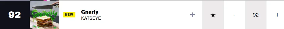米Billboardによると、「Gnarly」は最新シングルチャート(HOT100)で、92位を記録しました。