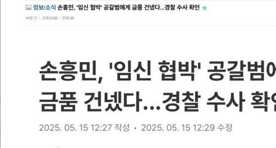 ソンフンミン「妊娠脅迫」で金品渡す? 男女2人、逮捕