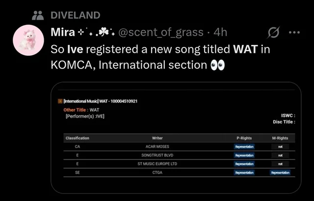 「IVE(アイヴ)」の未リリース曲が最近、「韓国音楽著作権協会」に登録され注目されています。