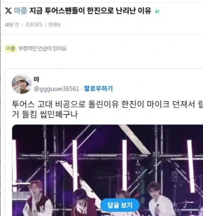 투어스 고대 비공으로 돌린이유 한진이 마이크 던져서 립싱인거 들킴 씹민폐구나 pic.twitter.com/kj2KZ9utZE