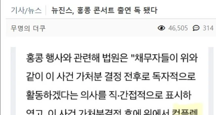 NewJeans「香港コン出演」が仇に…裁判所「仮処分に違反→間接強制、違反1回当たり各10億支給せよ」