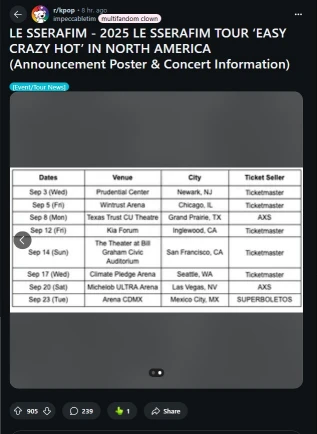 Le Sserafim、ワルツ「米公演」日程発表 → Reddit反応「カナダがない」「たった8公演だけ」