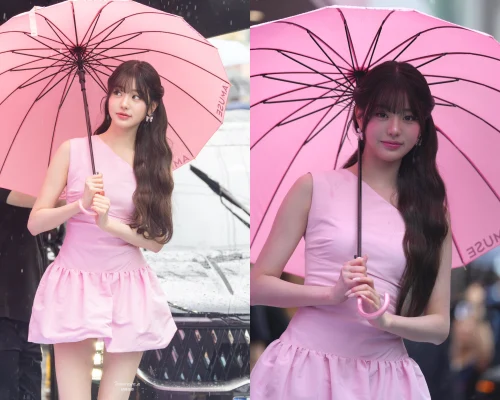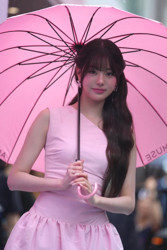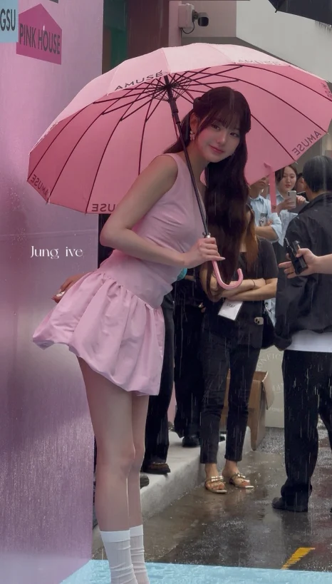 IVEウォニョン「Amuse」聖水洞ショップ訪問 – 雨の中、オールピンクにピンク傘