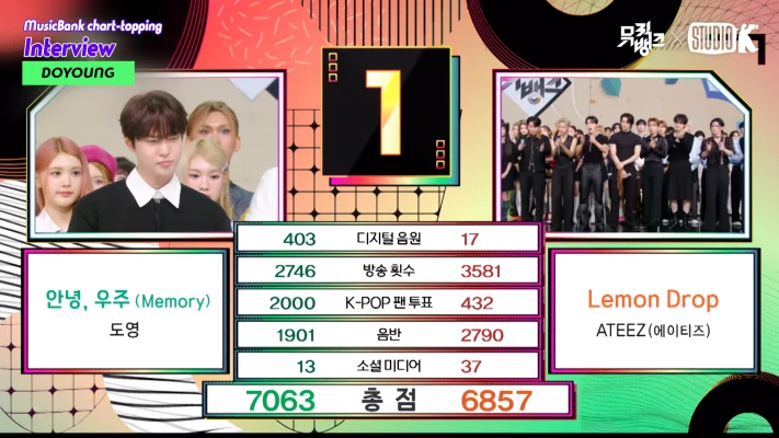 6月20日放送KBS2「ミュージックバンク」では、ドヨン「Memory」とATEEZ「Lemon Drop」が1位候補にノミネート。このうち1位に輝いたのは、ドヨン!