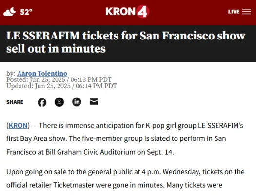 Le Sserafim「米サンフランシスコ」公演完売!約1日で、初ワルツ