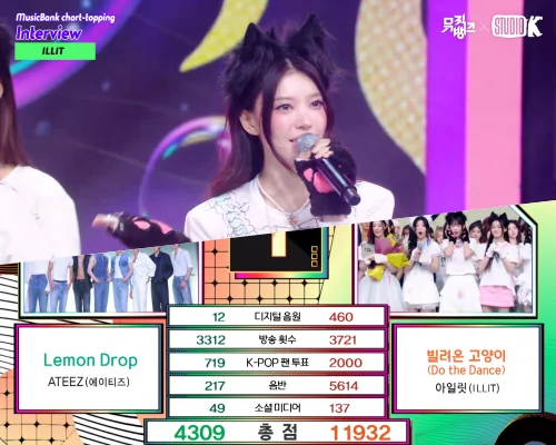 6月27日放送KBS2「ミュージックバンク」では、ILLIT「Do the Dance」とATEEZ「Lemon Drop」が1位候補にノミネート。このうち1位に輝いたのは、ILLIT!