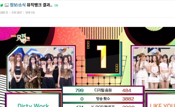 7月4日放送KBS2「ミュージックバンク」では、fromis_9「Like You Better」とaespa「Dirty Work」が1位候補にノミネート。このうち1位に輝いたのは、fromis_9!