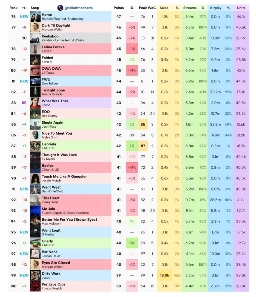 (有名歌手ケンドリック、Karol G, アリアナなどはエアプレイは50%以上)