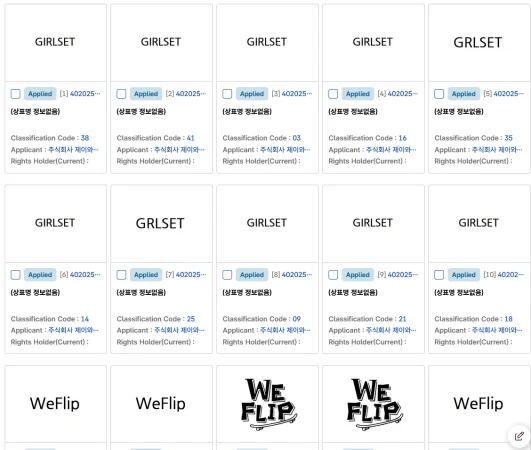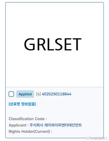 「JYPエンターテインメント」が「GRLSET」を商標登録出願しています。