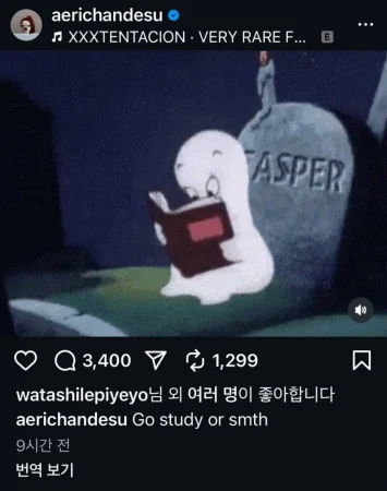 aespa「ジゼル」(24)が9日、Instagramを更新。「キャスパー」の写真をアップして、「勉強でもしな」と書き込んでいます。