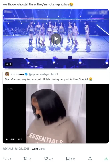 TWICEモモ「ワルツ咳き込み」動画に反響!「生歌」証明する結果に