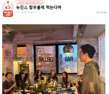 これについて、ファンからは健康を案ずる声があがる一方で、懐疑的な声も。韓国オンライン・コミュニティ「ネイトパン」では、メンバー(ミンジ, ヘリン)が、テーブルを囲む写真がアップ。2人が持つグラスは、シャンパンやワイングラスのようで、入っている液体もお酒のような色をしています。