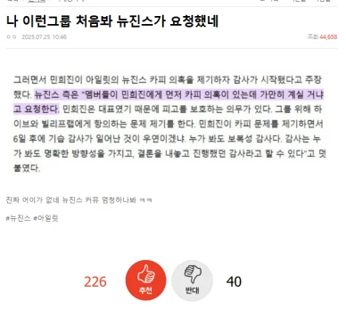こう公に主張したのは、Ador前代表「ミン・ヒジン」。そういった行動を促したのは、メンバーだという。ミン氏に、「じっとしているのか」と、行動するよう要請していたようです。