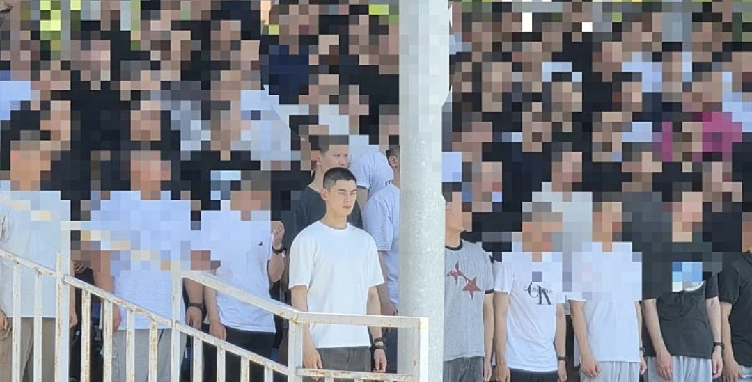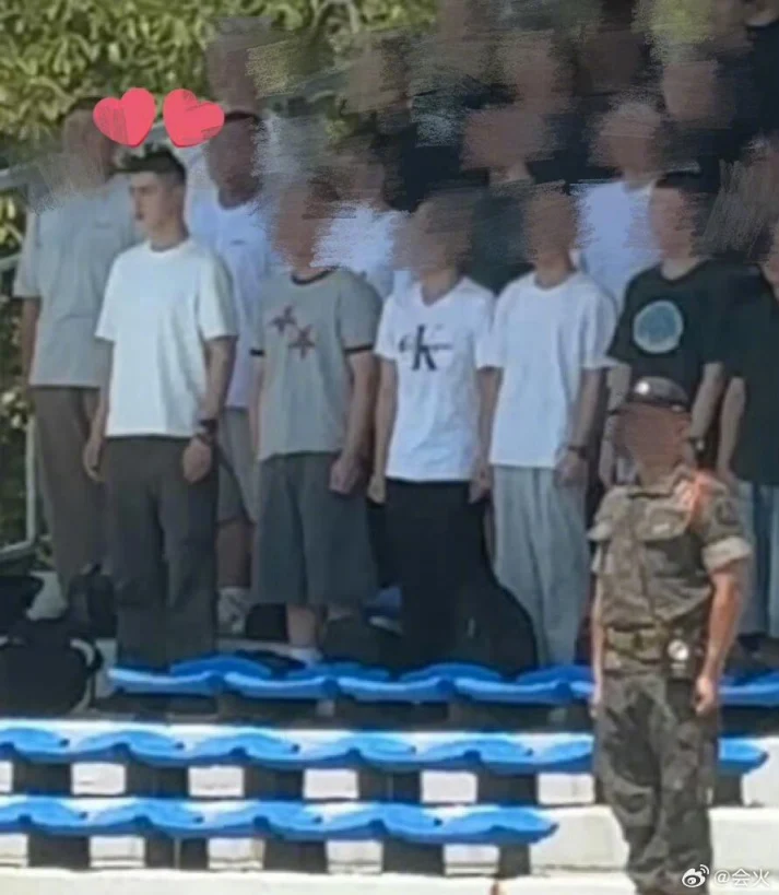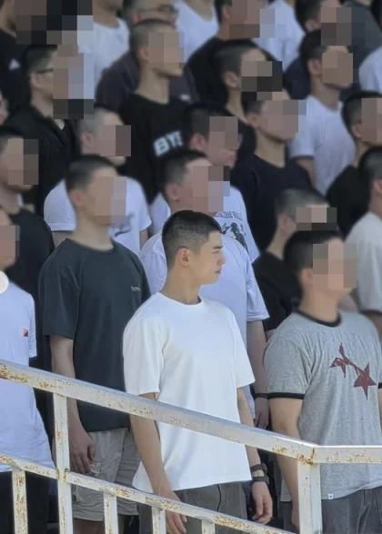 「ウヌ」はラフな服装で、同期生らと整列。軍人の姿も見られており、入所式に出席しているようです。敬礼姿も見られています。