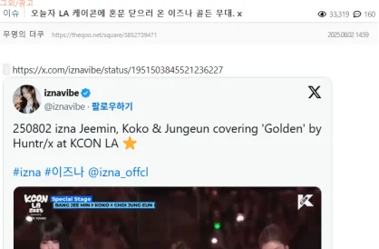 250802 izna Jeemin, Koko & Jungeun covering 'Golden' by Huntr/x at KCON LA ⭐️#izna #이즈나 @izna_offcl pic.twitter.com/FZCrznxjKR