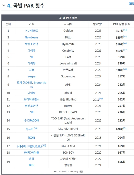 — Kpop Charts (@kchartsmaster) August 11, 2025