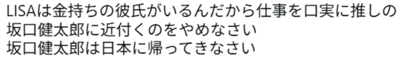 ▼「LISAは金持ちの彼氏がいるんだから、仕事を口実に推しの坂口健太郎に近付くのをやめなさい」