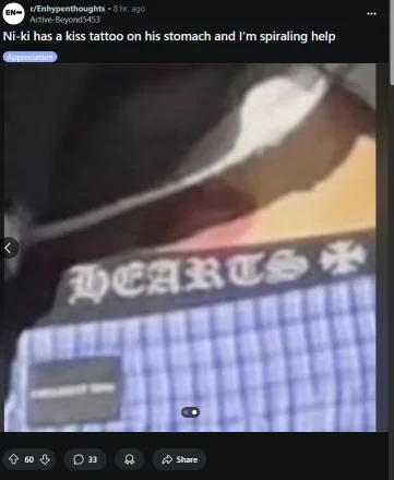 ENHYPENニキ、タトゥー入れた? 下腹部に赤キスマークが [Reddit反応]