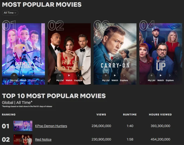 With 236 million views, KPOP DEMON HUNTERS is OFFICIALLY the most popular Netflix film OF ALL TIME. pic.twitter.com/A6yEiXzbHd