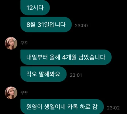 宮脇咲良は「12時だ。8月31日です」「今年4ヶ月残りました」「ウォニョンの誕生日だね」「カカオトークしに行く」と綴っています。
