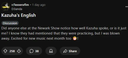 このスピーチ全て英語で行われことは、Redditで注目されることに。現地ファンに思いをダイレクトに伝える姿勢に、称賛する声があると同時に、英語の出来についても「上手でビックリした」と、海外ファンの感嘆を誘っています。