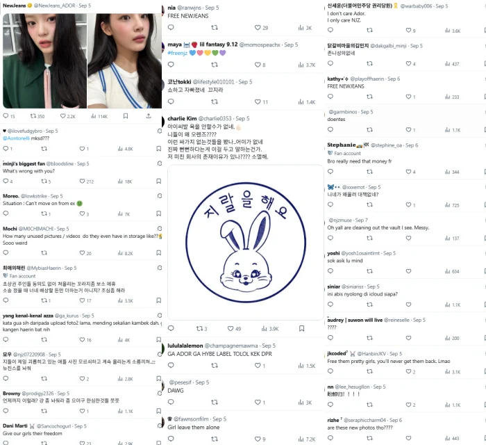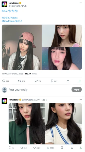 反応はというと、ネガティブなものが目立っている。ポストの返信欄では、「肖像権の本人たちの同意なしにあげる姿を見てください」「自分たちが一番いじめている子たちの写真を知らないふりをしてずっと上げるのが鳥肌が立つ」「本当に図々しい」「メンバーを放っておいてくれ」と、「NewJeans」の立場を支持するファンによる反発がみられています。
