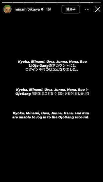 この声明文は、クルー公式アカウントに掲載されたが、現在削除されている。メンバー6人は各自の個人SNSアカウントを通じて「アカウントにログインできない状況になった」と、締め出されたと主張しています。