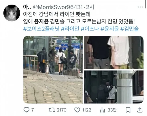Xユーザーによると、「ジユン」は9月14日朝、ライアン(Boys II Planet), キム・ミンソル(Wake One練習生)と一緒に江南を歩いていたという。公開された写真には、その後ろ姿が写っている。
