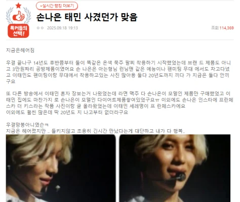 投稿主は「ナウンは、知ってるお兄さん・ランニングマンのようなバラエティやファンミーティングの舞台でもつけていた。テミンもファンミと舞台で着用している写真多い。両方とも2020年度までつけていたが、今はどちらもつけていません」と、”約5年間付き合っていたが今は破局した”と主張しています。