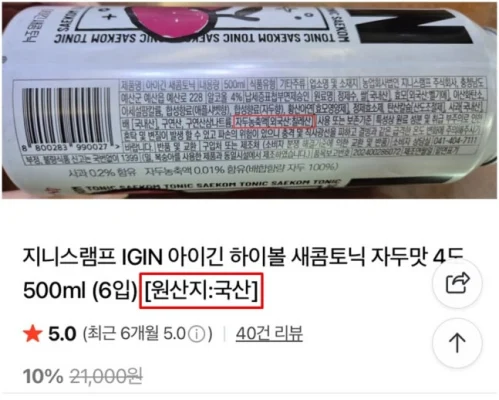 「ジニースランプ」はオンラインショッピングモールで、「IGIN」を販売。プラム味、スイカ味があるが、その原産地表示が問題視された。