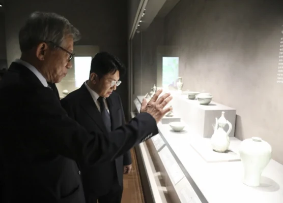 韓国「国立中央博物館」は2日、館長と「パン・シヒョク」HYBE議長の写真をアップ。その後、この写真を削除しています。