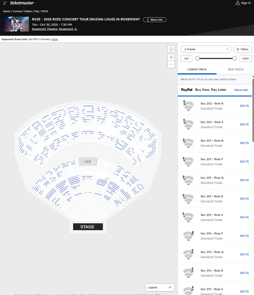 チケット販売サイトを見てみると、米公演初日(イリノイ)は10/18現在、空席を示す「青丸」が目立っている。スタンド席は当初「80ドル」台で発売されていたが、現在「40ドル」と半額に。ただ、状況は好転していない。同公演の開催を危ぶむ見方が出ています。