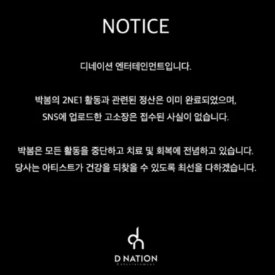 この告訴状は22日にアップされた後、その夜に削除された。しかし23日の明け方には「パク・ボム hates YG. インターネットをしている愛する国民の皆さん。YGがパク・ボムに何をしたのか、隅々まで調べてください。ありがとうございます」という書き込みと共に、告訴状を再公開した。