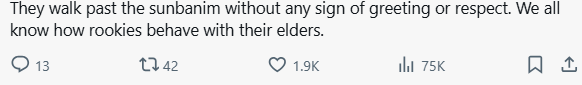 「バンチャン」は過去に、「挨拶返さない後輩がいた」「通りがかって挨拶した時、挨拶で応えない。(それを見たら)この世代はそういうことが許されているようだと思うんじゃないか」と発言し炎上していたこともあり、この場面は注目された。