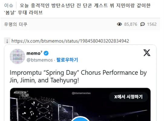 本ステージはリハーサルもなしに行われたと見られるが、「春の日」はBTSを代表する曲。「テヒョン」が歌詞を忘れたり、出来の良くない歌唱で、韓国オンライン・コミュニティで「炎上」しています。