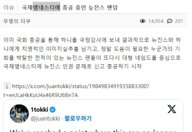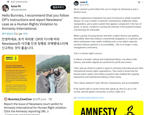 敗訴した「NewJeans」ファンが、国際人権団体「アムネスティ・インターナショナル」に通報する動きをみせています。