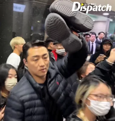 この時の状況について、ファンは「バッグと靴を取られて、取り返そうとした」。それを裏付けるように、Dsipatchは、靴を手にした警備員の姿をアップ。靴はその後、本人の下に渡され、「ゴンホ」はこの警備員に謝意を述べたという。