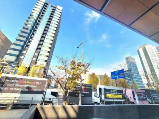 NewJeans復帰に反発….ルセラ・ILLITファン、トラックデモ…「HYBEに行くだけで鬱病、本当に苦しいのはLe Sserafimとピオナ」