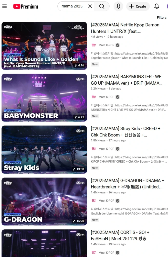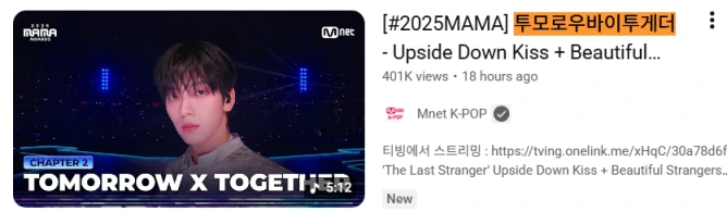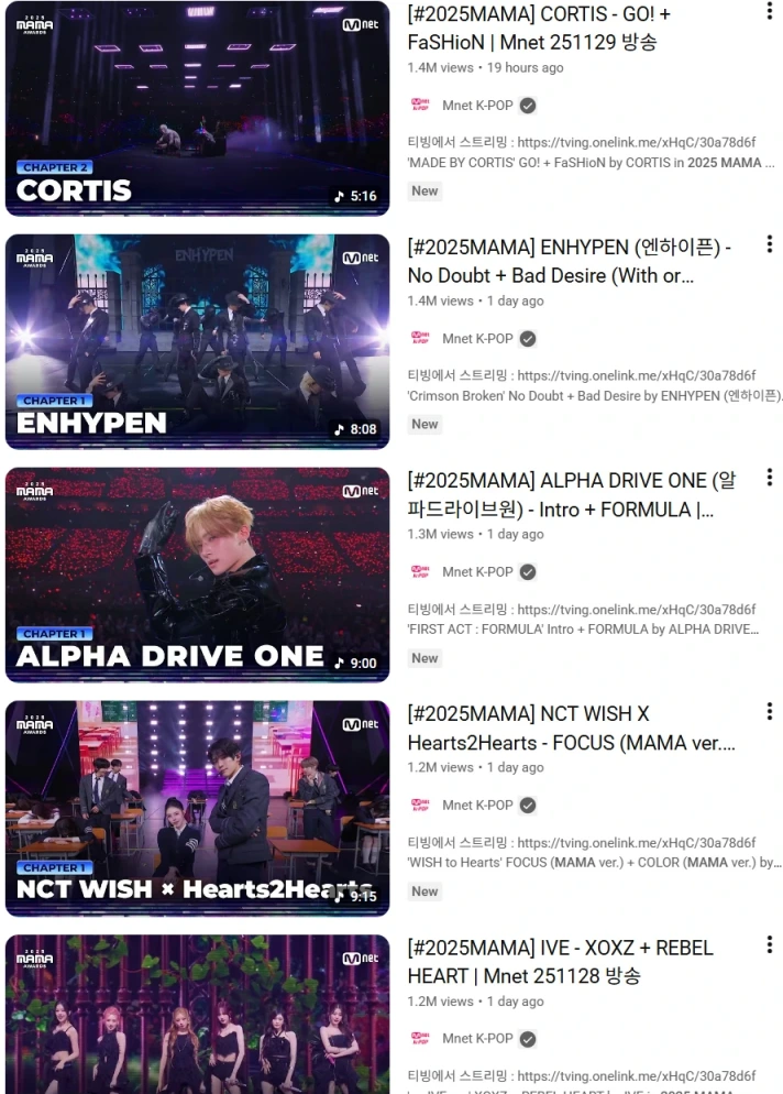 「2025 MAMA」舞台再生数ランキング:Babymonsterが1・2位独占、3位Stray Kids, 4位GD, 5位Cortis, 6位EHYPEN