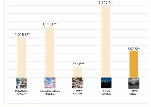 「RIIZE(ライズ)」が24日、新シングル「Fame」をリリース。その初動はハントチャートによると、「655,754枚」でした。
