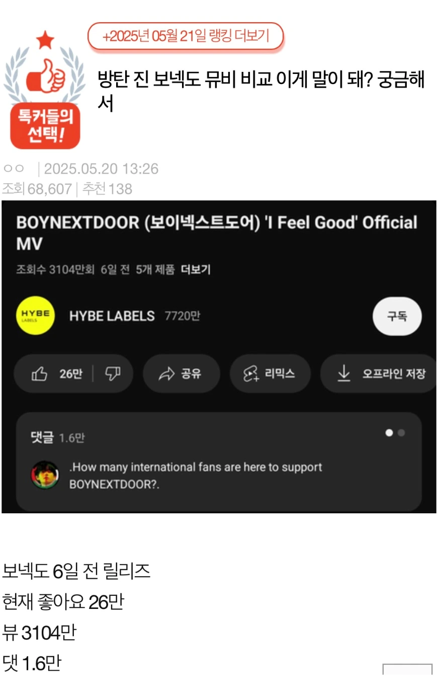 ▼「Boynextdoorに負けて、もうライバル構図で観るのが難しいほど」
