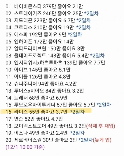 この成績を受けて、韓国オンライン・コミュニティでは「ライズ、本当にどうしてこうなったの?」との書き込みがトレンド入りすることに。「デビュー当初は本当に久しぶりに大衆性まで備えたアイドルが出るのかと思ったが、こんなに短期間で失速したのはレジェンドだ」「新曲がダメになったのはさておき、『ママ』『ジャコン』の再生数を見て衝撃を受ける」と綴っている。