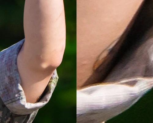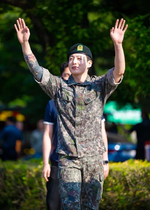 ただ「ジョングク」のタトゥーについては、一部では「合成」「AI」といったフェイク説が指摘されている。しかし、これは本物のタトゥーのようです。今年6月除隊時に、韓国メディアがアップした高画質写真。ズームしてみると、「子犬の顔」らしきタトゥーが入っていることが確認できます。