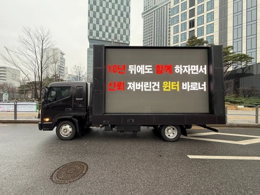 双方の事務所(SM, HYBE)が沈黙を貫く中、ウィンターのファンが11日、トラックデモを行っています。