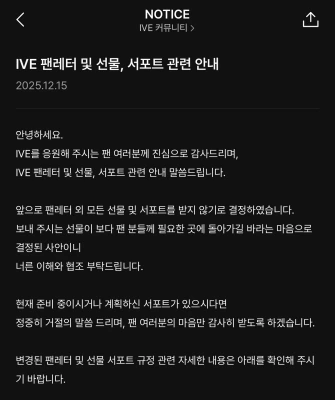 IVE「プレゼント、今後受け取らない…ファンレターのみ受領」