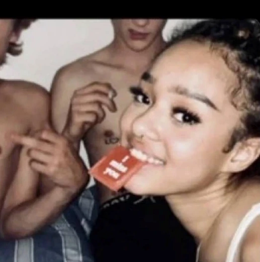 流出した写真では、「マノン」らしき女性の姿が。もし本人だとすると、かなり前のようです。顔が幼い。後ろには、上半身裸の男性2人がおり、女性は何かをくわえている。形状から、コンドームのようにみえる。セクシャルな場面を連想させる写真となっています。