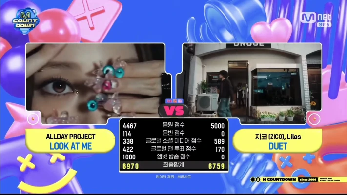 1月8日放送、新年1発目のMnet「MCountdown」では、Allday Project「Look At Me」とジコ「Duet」が1位候補にノミネート。このうち1位に輝いたのは、Allday Project!