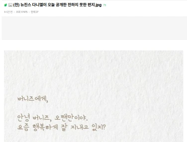“NewJeans追放”ダニエル、直筆手紙「ミンジ, ハニ, ヘリン, ヘイン私の家族」